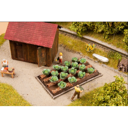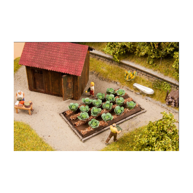 Minis de decoração são pequenos campos prontos para instalar com diferentes plantas. Eles são simplesmente retirados da embalagem e colados na paisagem do modelo. Você pode criar belas camas em seu layout de modelo ferroviário em pouco tempo com o "Repolho Branco".