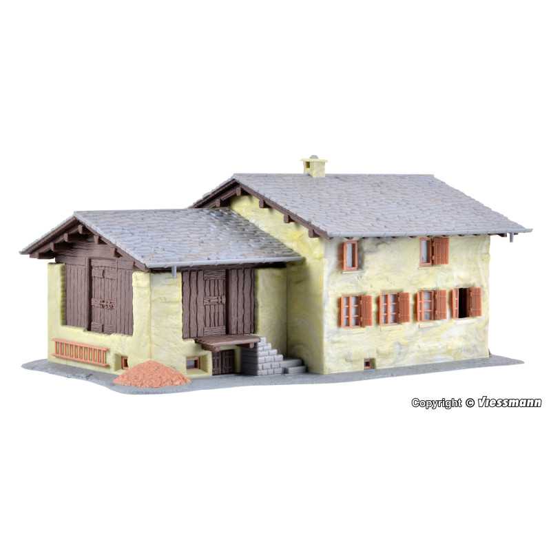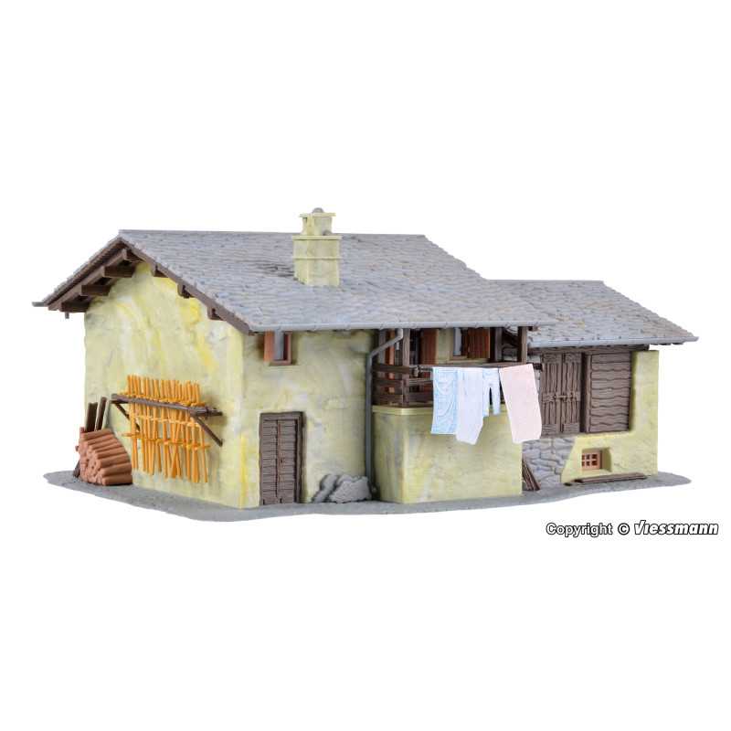 Kit. Não muito longe de St. Moritz, acima do Lago Sils, no cantão suíço de Engadin, fica a pitoresca vila de verão de Grevasalvas. Aqui, a uma altitude de quase 2000,0 m, você encontrará as lindas casas de montanha que são tão típicas desta região. Com a casa de montanha Palü, a Engadin, que é um verdadeiro paraíso para caminhantes e amantes da natureza, se torna parte do seu layout de modelo ferroviário local. Todos os kits da série Grevasalvas podem ser maravilhosamente combinados para formar uma genuína vila suíça. Mas mesmo quando colocado separadamente no layout, este kit aprimora qualquer paisagem de modelo ferroviário alpino devido ao seu estilo de construção que é típico daquele país.