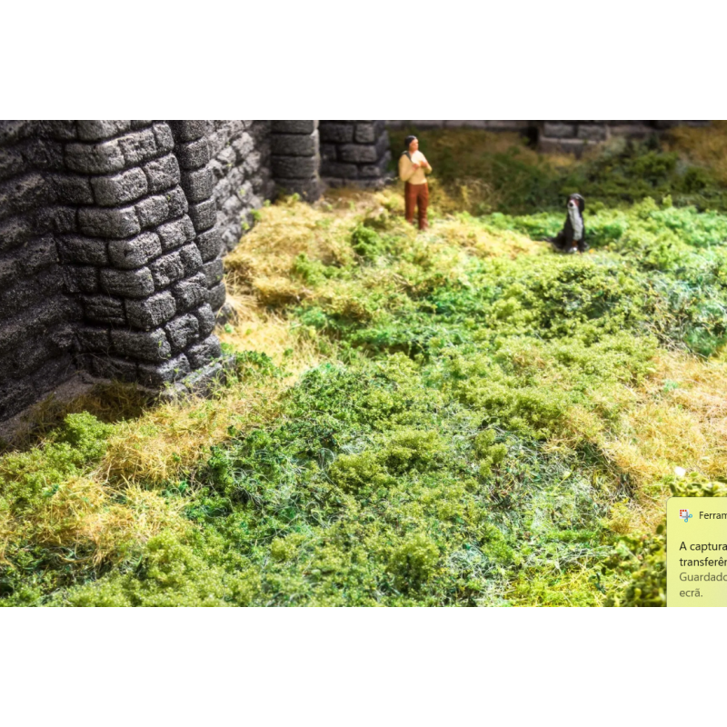 • Meadow Foliage: a Meadow Foliage também é eletrostaticamente flocada. Fibras ligeiramente mais curtas são usadas em comparação à Wild Grass Foliage. A Meadow Foliage pode, portanto, ser usada em todas as áreas onde os humanos intervêm no crescimento natural das plantas. Exemplos são prados e pastagens, bem como terras agrícolas.
