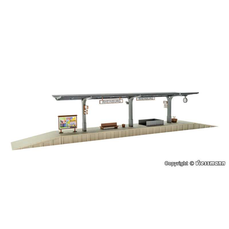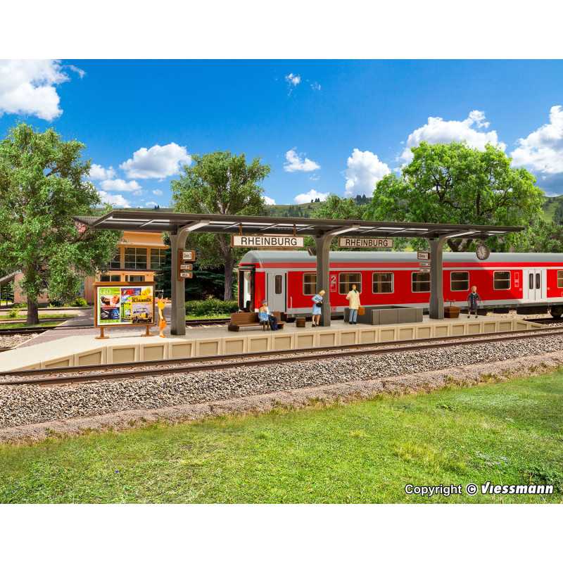 Kit. As plataformas são um acessório indispensável para estações ferroviárias. O modelo Rheinburg, assim como a versão longa Seeburg, item 43536, com seu design atemporal, adaptam-se a diversas épocas. Dimensões: C 37 x L 4,8 – 6,5 x A 6 cm / Altura da plataforma 1,2 cm