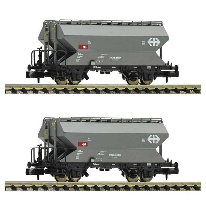 Conjunto de vagões com dois vagões silo de grãos, tipo Tgpps, da Ferrovia Federal Suíça.