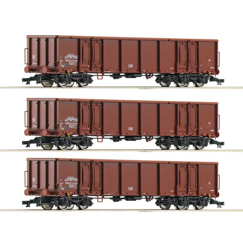 Conjunto de gôndolas de 3 peças da Deutsche Reichsbahn, tipo Eans 069. Época IV.